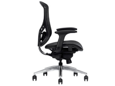 Silla ejecutiva con slide plate para regular la profundidad del asiento.