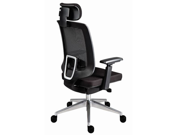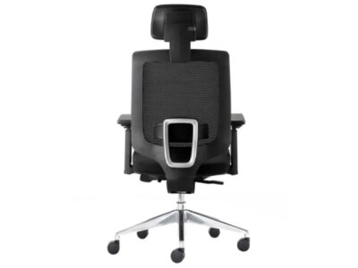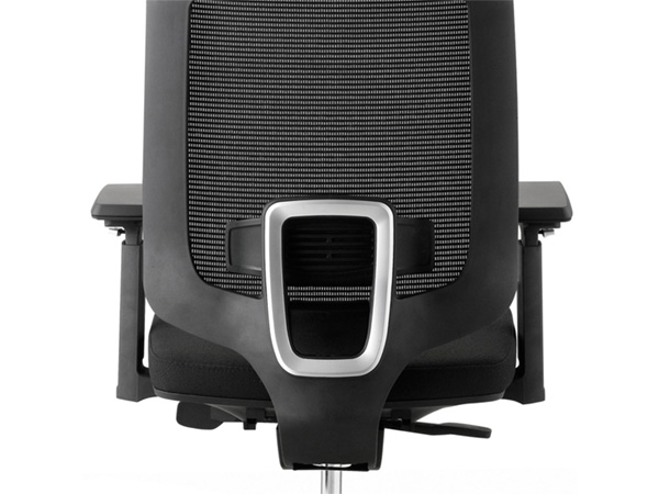 Respaldo tapizado en malla con almohadilla lumbar ajustable.